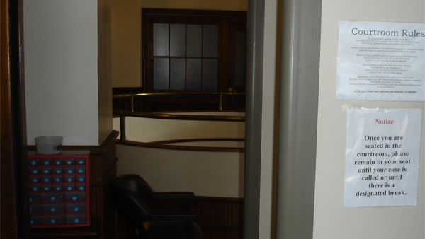 In this scene Vinny tracks down Lisa to testify about the tire tracks in the photo she took. The phone booth in this scene was originally stationed on the top floor immediately outside the courtroom inside the Jasper County Courthouse. However, I’m guessing that due to the uptick in cellphone usage, it has since been removed.